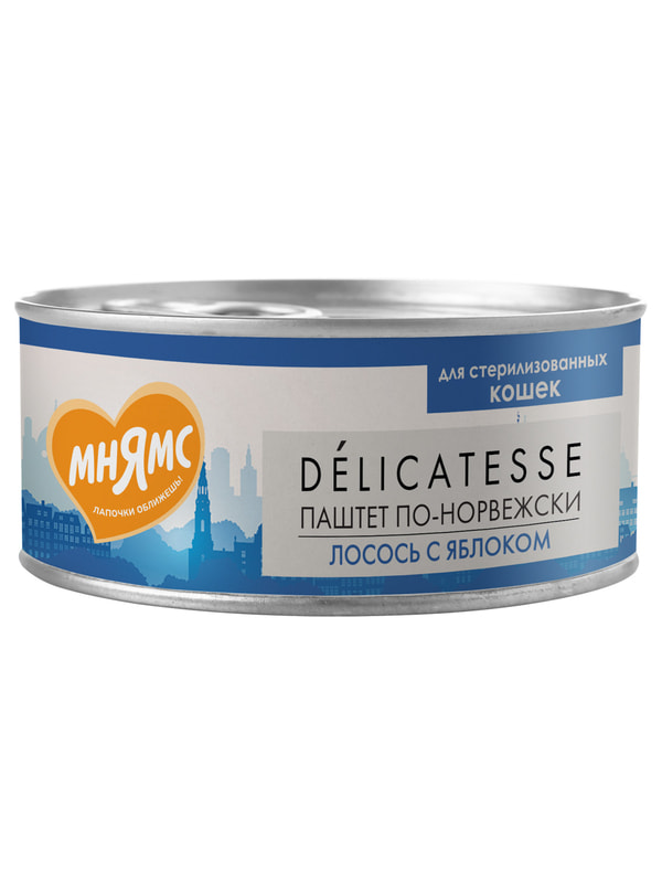 Повседневные корма Мнямс Влажный корм Мнямс Деликатес Лосось с яблоком для стерилизованных кошек "Паштет по-норвежски" 100 г