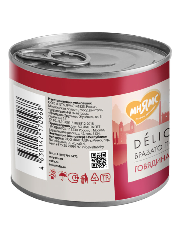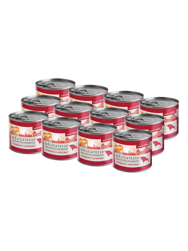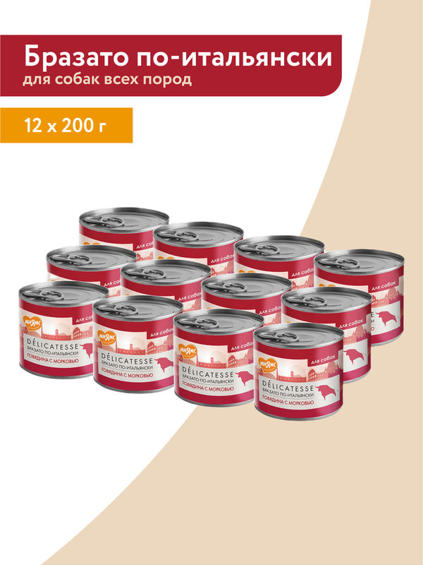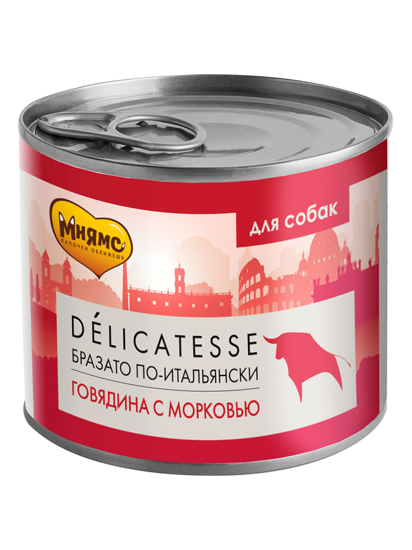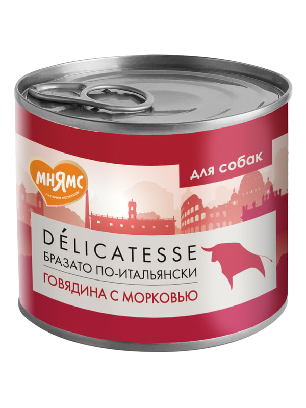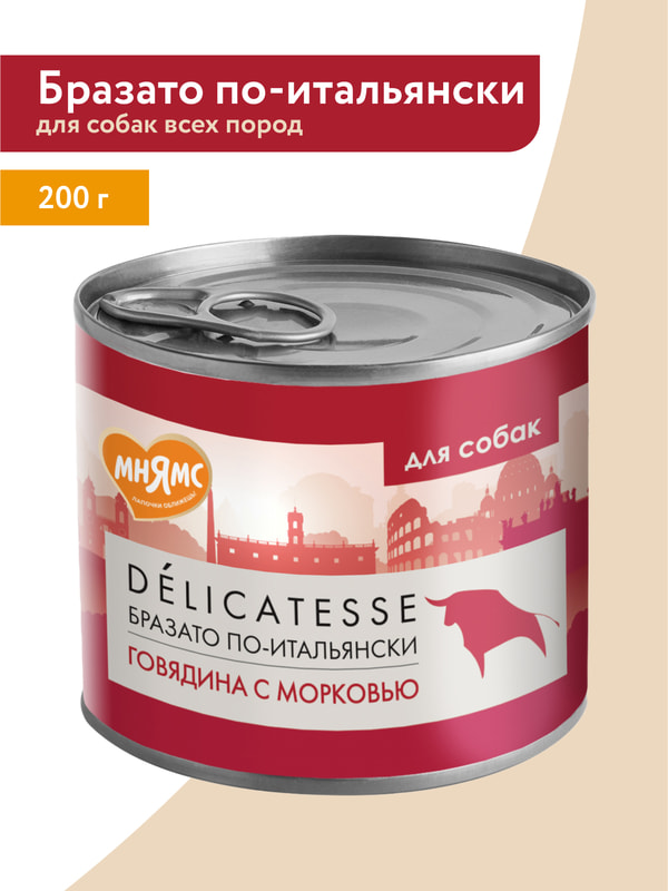 Повседневные корма Мнямс Влажный корм Мнямс Деликатес Паштет из говядины с морковью для собак всех пород "Бразато по-итальянски" 200 г