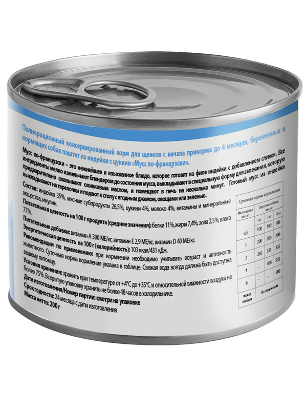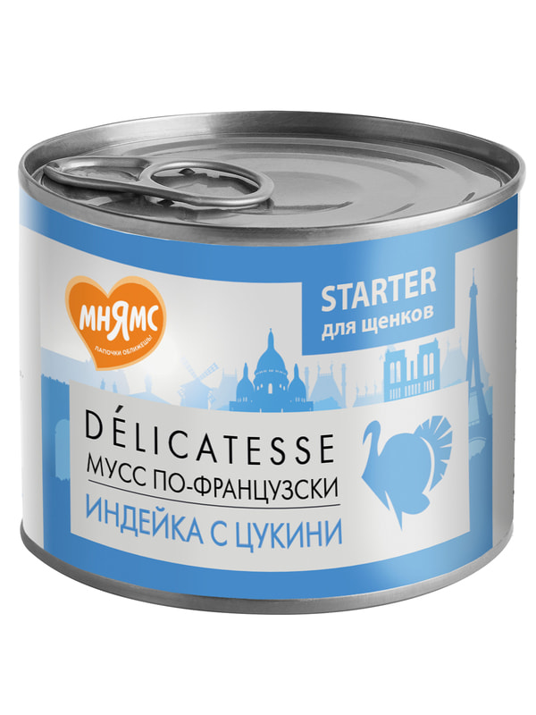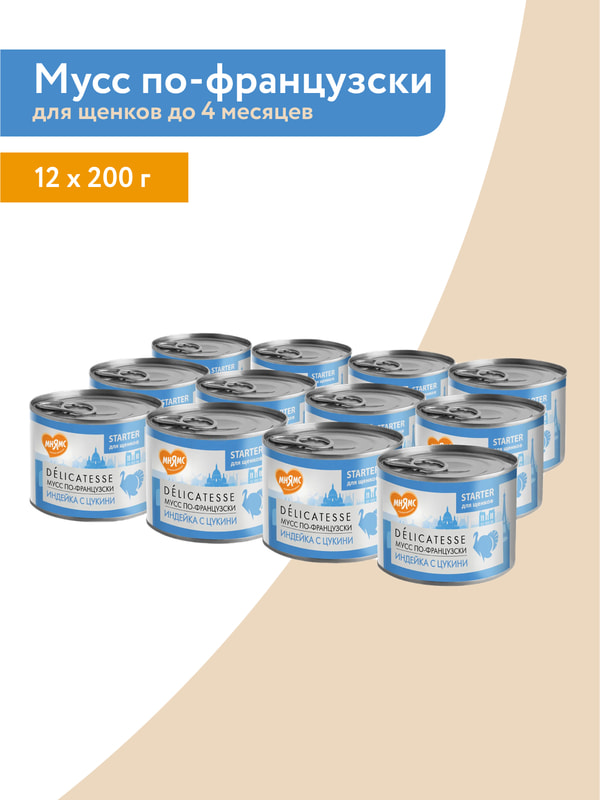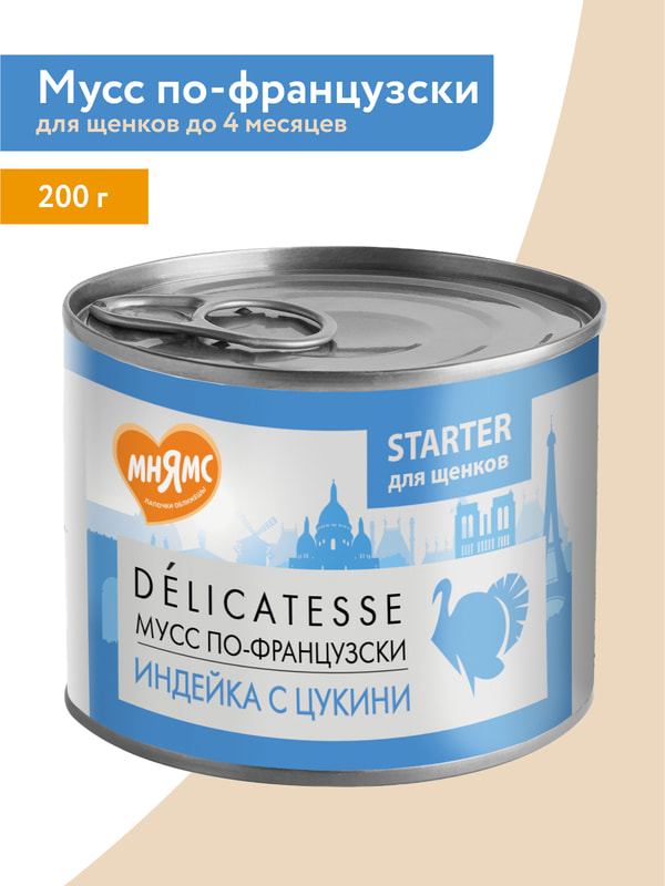 Повседневные корма Мнямс Влажный корм Мнямс Деликатес Паштет из индейки с цукини для щенков до 4 месяцев "Мусс по-французски" 200 г