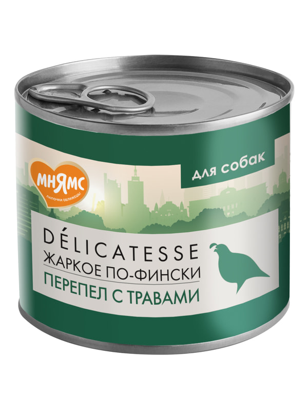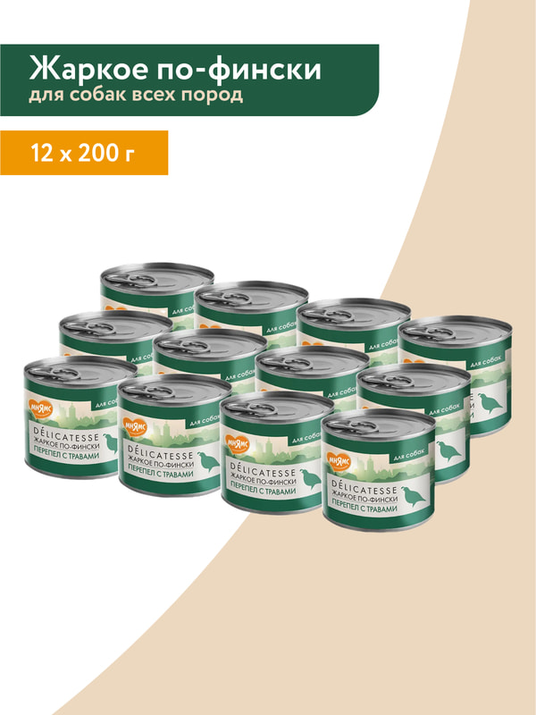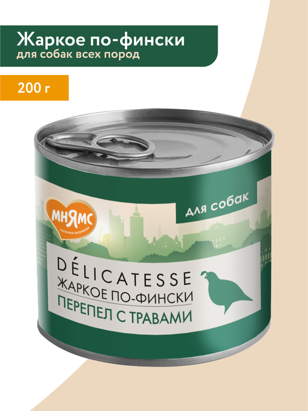 Повседневные корма Мнямс Влажный корм Мнямс Деликатес Паштет из перепёлки с травами для собак всех пород "Жаркое по-фински" 200 г