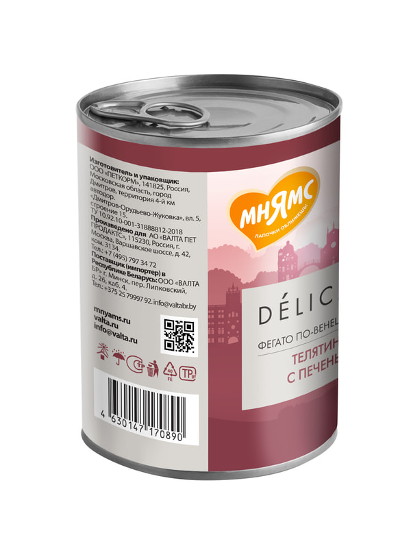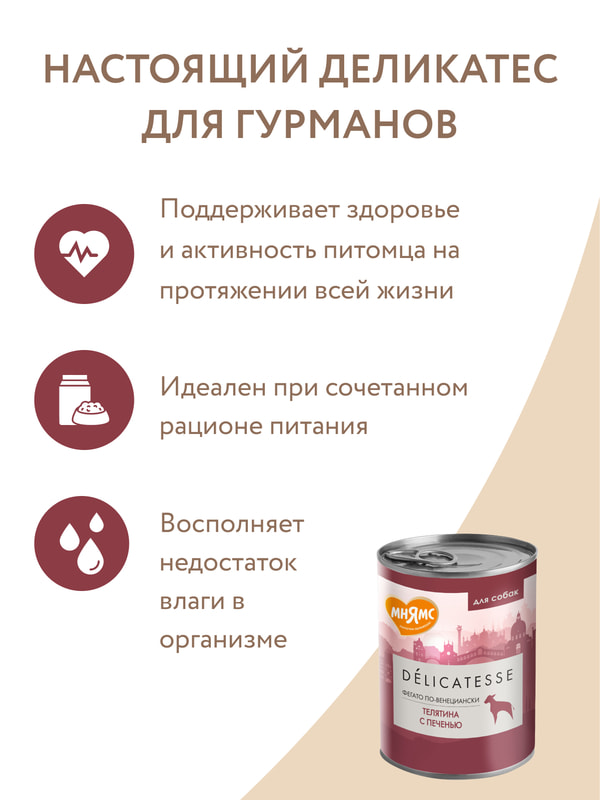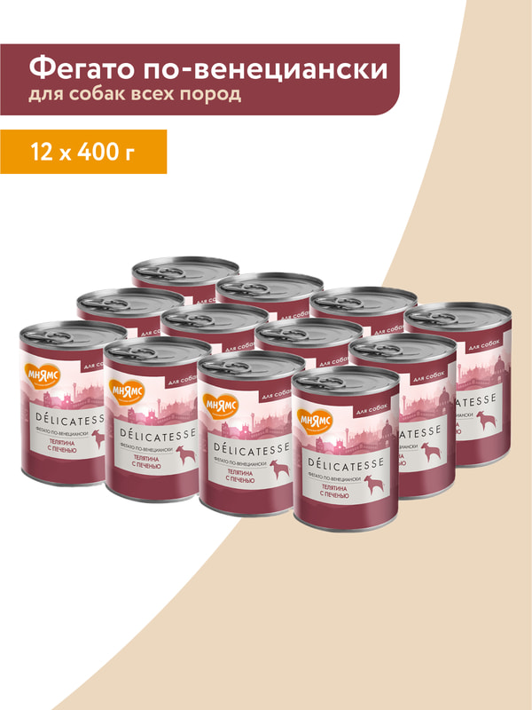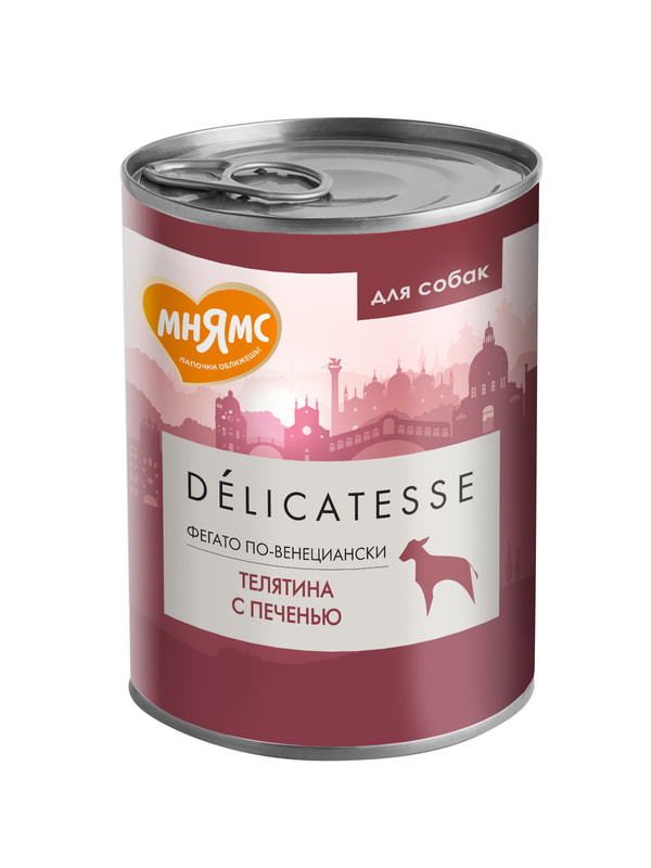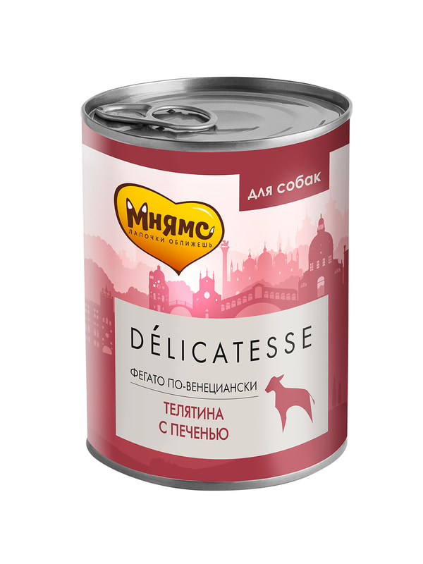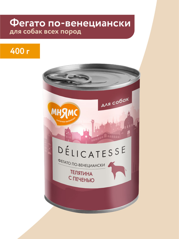 Повседневные корма Мнямс Влажный корм Мнямс Деликатес Паштет из телятины с печенью для собак всех пород "Фегато по-венециански" 400 г