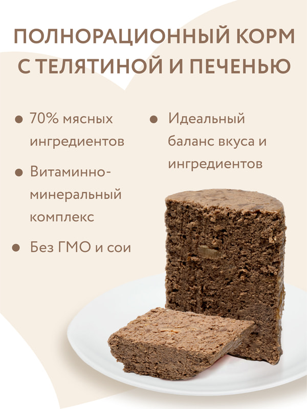 Ингредиенты: Состав: телятина 50%, говядина 13%, телячья печень 7%, витамины, минеральные вещества, свекловичная клетчатка, прованские травы 0,2%, льняное масло 0,1%.
