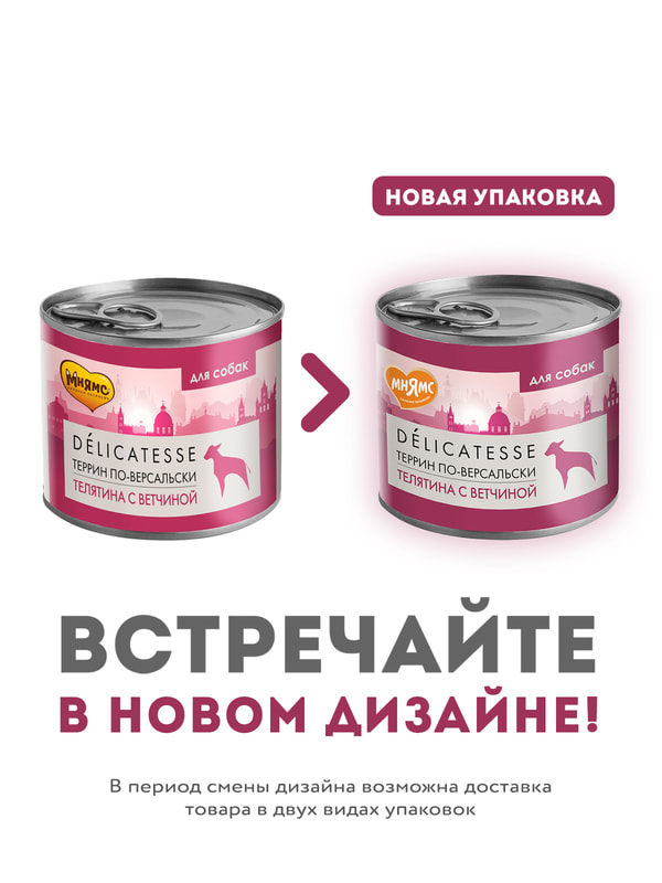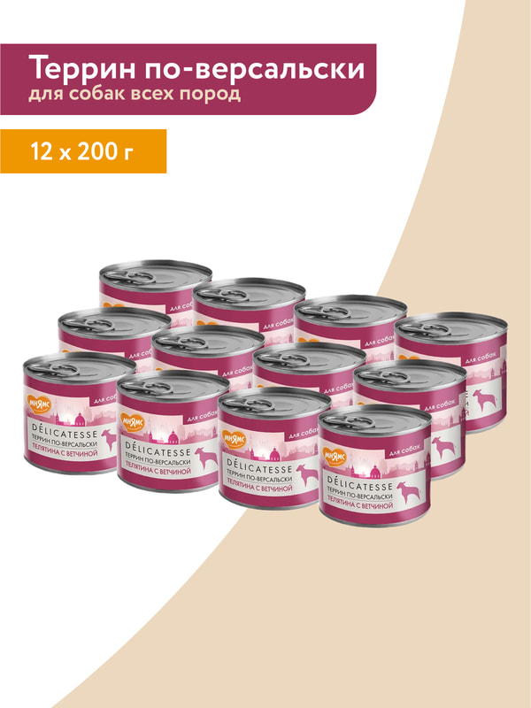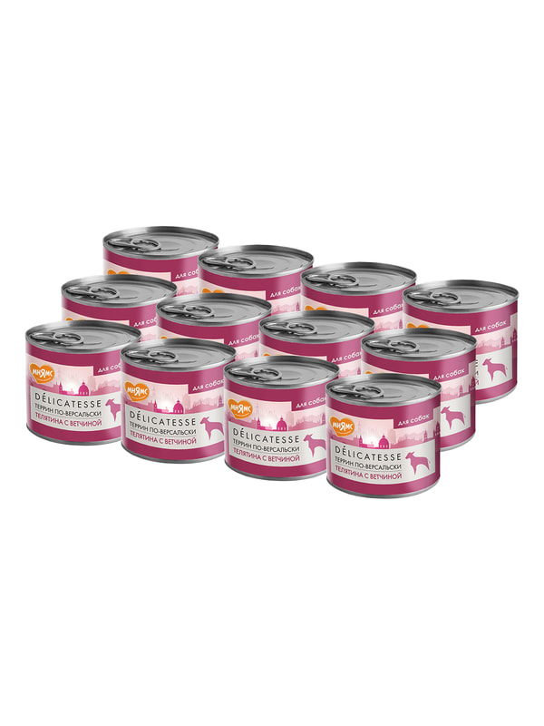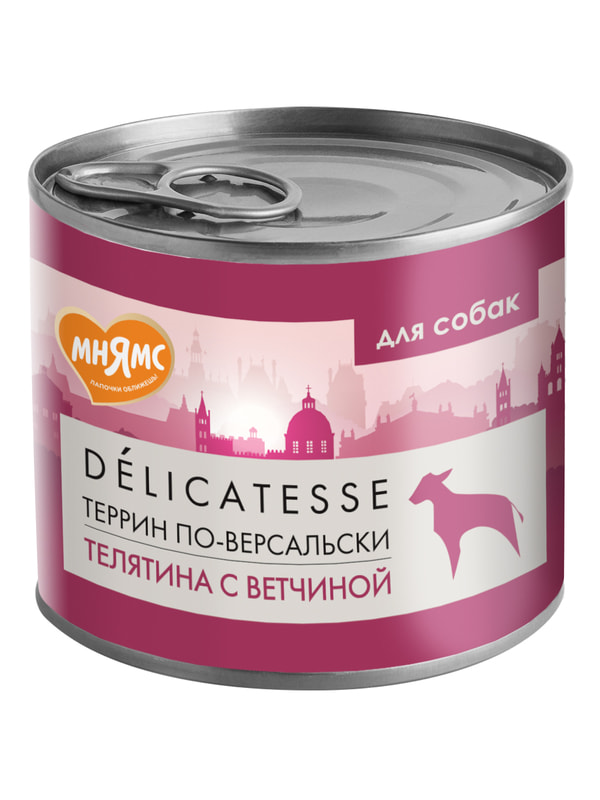 Повседневные корма Мнямс Влажный корм Мнямс Деликатес Паштет из телятины с ветчиной для собак всех пород "Террин по-версальски" 200 г