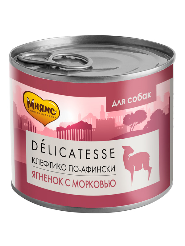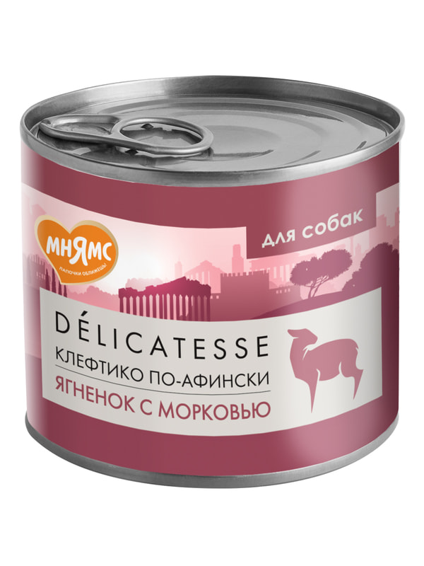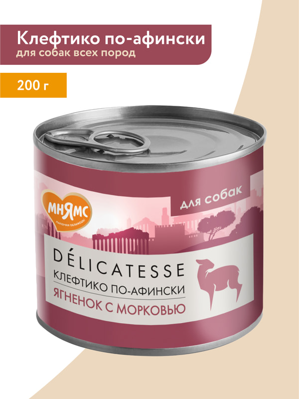 Повседневные корма Мнямс Влажный корм Мнямс Деликатес Паштет из ягненка с морковью для собак всех пород "Клефтико по-афински" 200 г