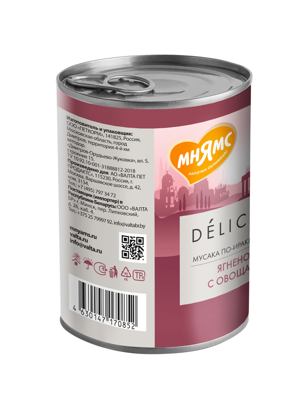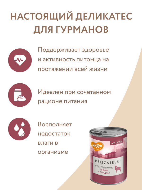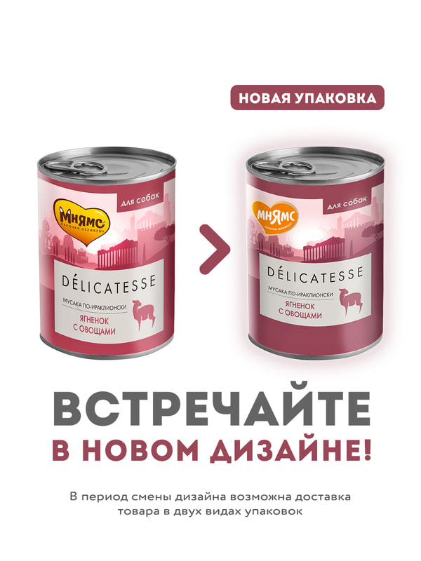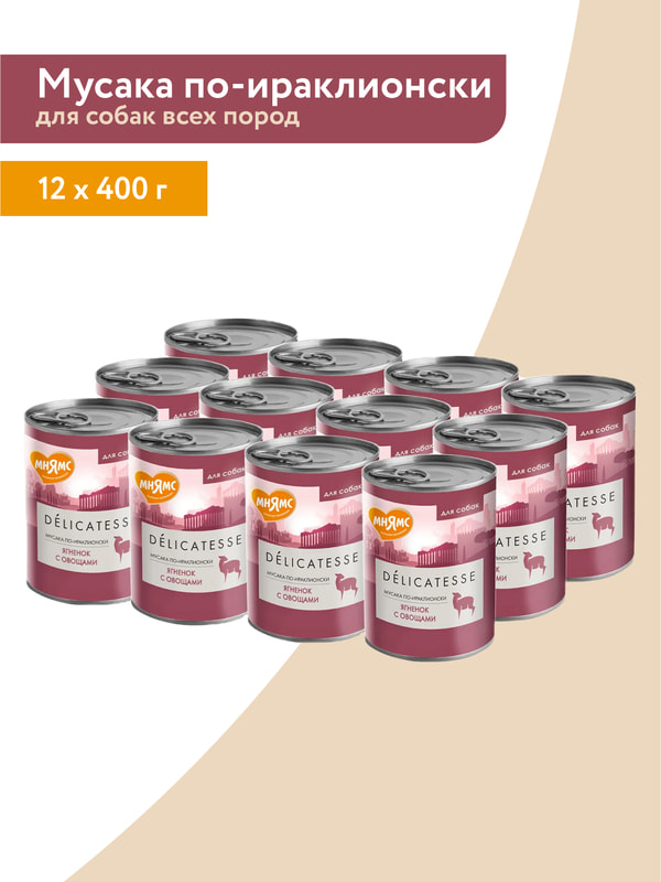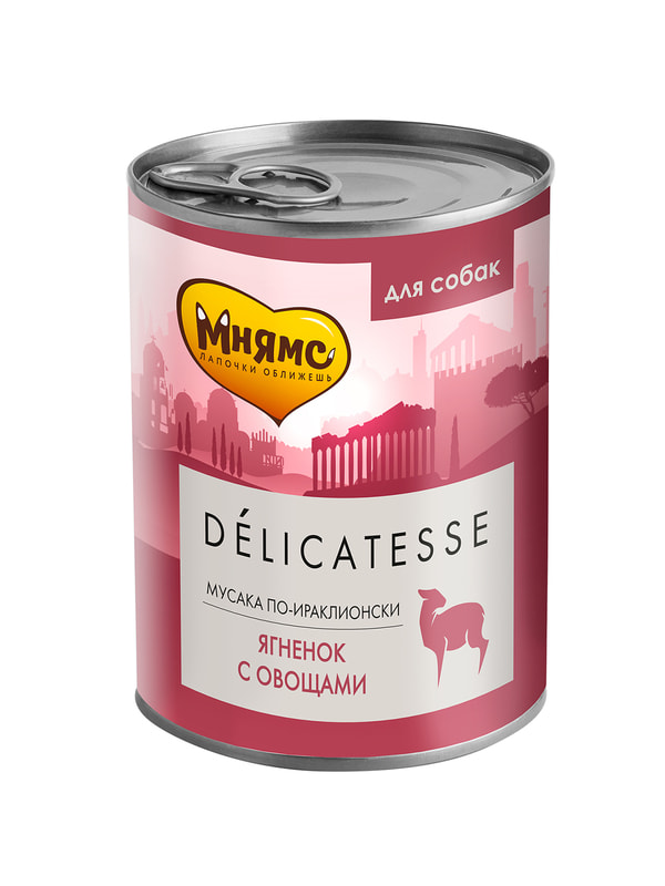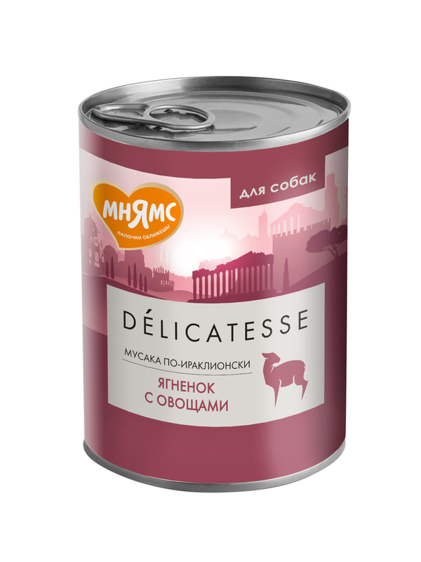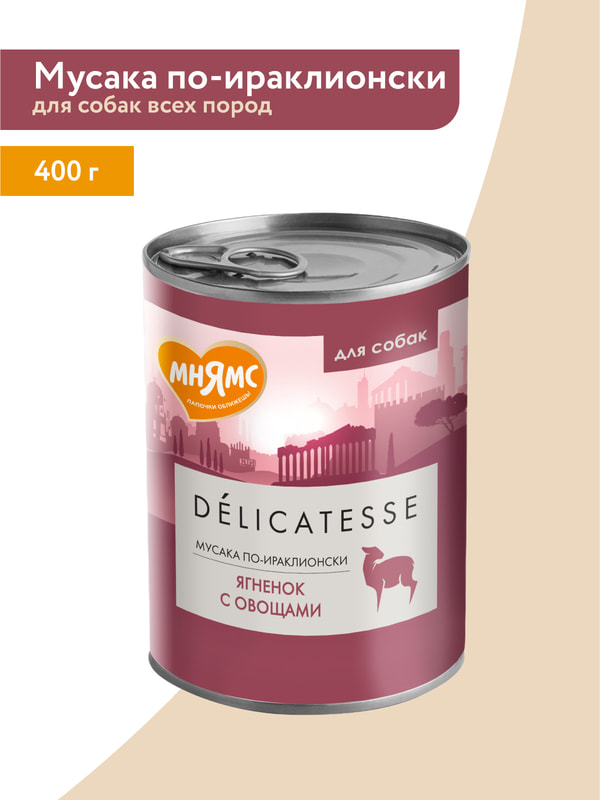 Повседневные корма Мнямс Влажный корм Мнямс Деликатес Паштет из ягненка с овощами для собак всех пород "Мусака по-ираклионски" 400 г