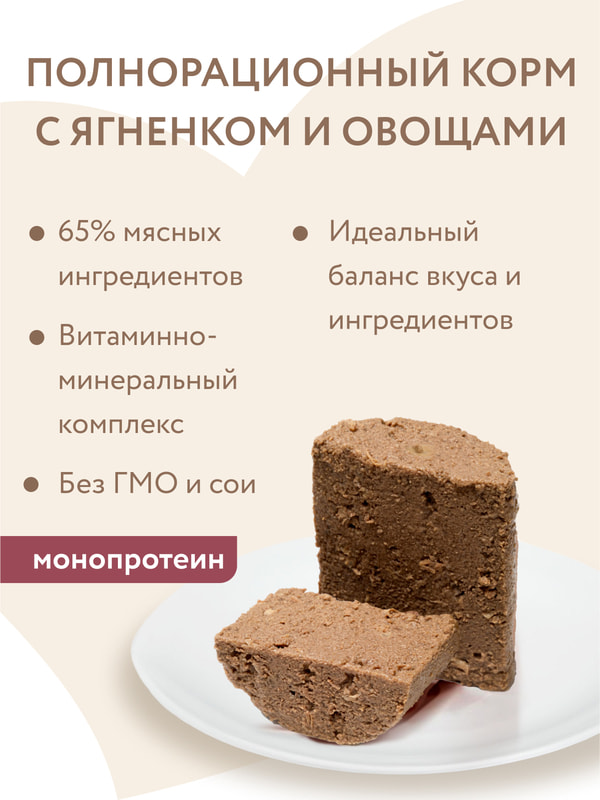 Ингредиенты: Состав: ягнёнок 65% картофель 2%, томаты 2%, витамины, минеральные вещества, свекловичная клетчатка, льняное масло 0,1%.