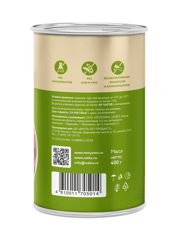 Состав: мясо и мясные субпродукты 45% (кролик не менее 5%), злаки, L-карнитин, DL-метионин, витамины и минералы, инулин.