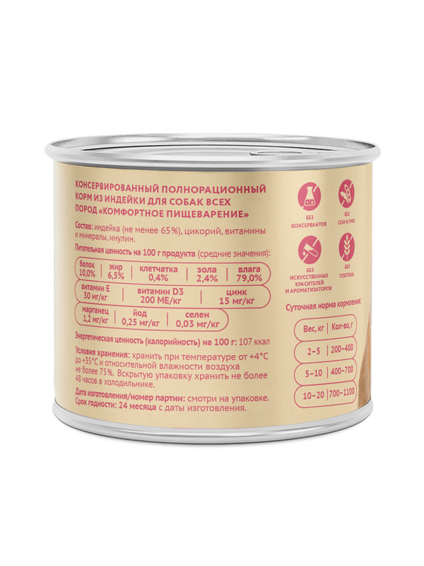 Ингредиенты: Состав: индейка (65%), цикорий, витамины и минералы, инулин.