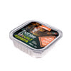 Лосось (26%), свиная печень, куриное мясо, свежая морковь (2%), сухая пульпа томата, дегидрированная зеленая фасоль 1% (соответствует 4,3% от свежей фасоли), минеральные вещества, гидролизованный животный белок, гороховая клетчатка, ксилолигосахариды (X.O.S. 0,1%), юкка шидигера (0,1%), спирулина.Питательная ценность: сырой белок: 10%, сырая клетчатка: 1%, сырой жир: 5%, сырая зола: 1,6%, влажность: 79%.Энергетическая ценность: 960 ккал/кг.Питательные добавки в 1 кг: витамин D3 294 МЕ, витамин E (альфа-токоферола ацетат) 10,5 мг, селен (селенит натрия 0,05 мг) 0,02 мг, марганец (сульфат марганца моногидрат 7,5 мг) 2,4 мг, цинк (оксид цинка 35 мг): 28,1 мг, медь (сульфат меди (II) пентагидрат 3 мг) 0,76 мг, железо (сульфат железа (II) моногидрат 25 мг) 8,22 мг, йод (йодат кальция безводный 0,4 мг) 0,26 мг, таурин 1000 мг.