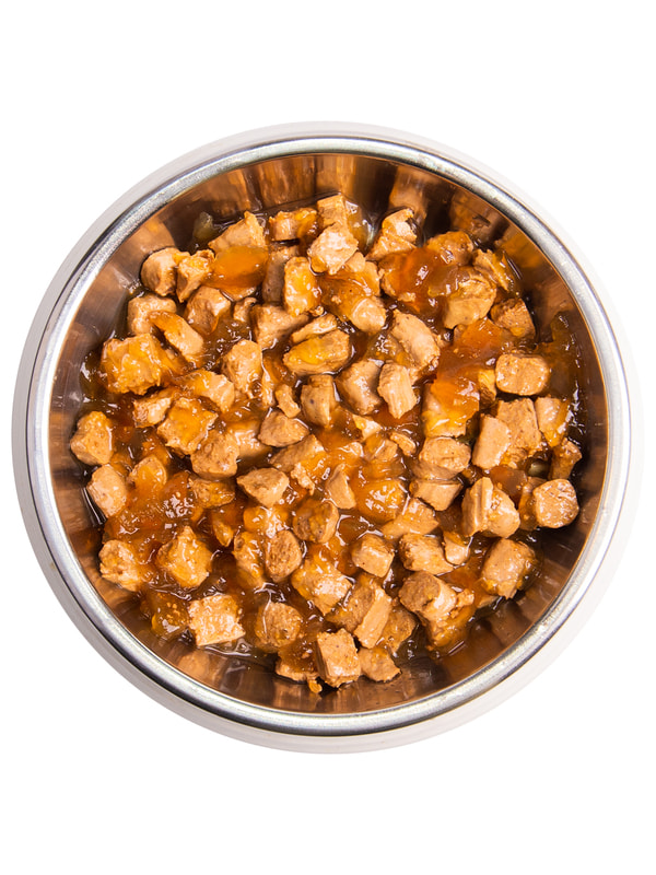 Мясо и мясные субпродукты (свежее мясо итальянского кролика 35%, свинина 10%), рыбий жир (очищенное лососевое масло 2%), овощи (картофель), минералы, сухой молочный белок.Питательная ценность: сырой белок 9.7%, сырая клетчатка 0.5%, сырой жир 3.8%, сырая зола 2.5%, влага 80%.Энергетическая ценность: 892 ккал/кг.Питательные добавки в 1 кг: витамин D3: 180 МЕ, витамин E (альфа-токоферола ацетат): 40 мг, железо (сульфат железа моногидрат): 13 мг, йод (йодат кальция): 1.6 мг, медь (сульфат меди пентагидрат): 3.4 мг, марганец (сульфат марганца моногидрат): 8.5 мг, цинк (оксид цинка): 42 мг, селен (селенит натрия): 0.04 мг, таурин 500 мг.Технологические добавки: загустители и желеобразующие компоненты.