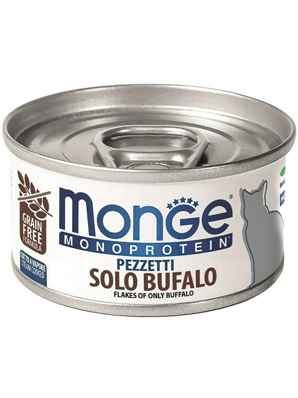 Повседневные корма Monge Влажный корм Monge Cat Monoprotein для кошек, мясные хлопья из мяса буйвола, консервы 80 г