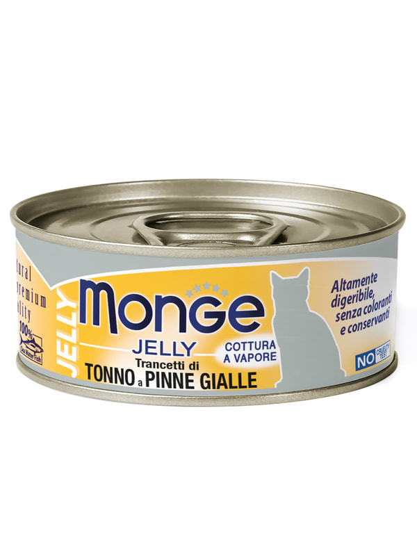 Повседневные корма Monge Влажный корм Monge jelly Adult cat для взрослых кошек с желтоперым тунцом, консервы 80 г