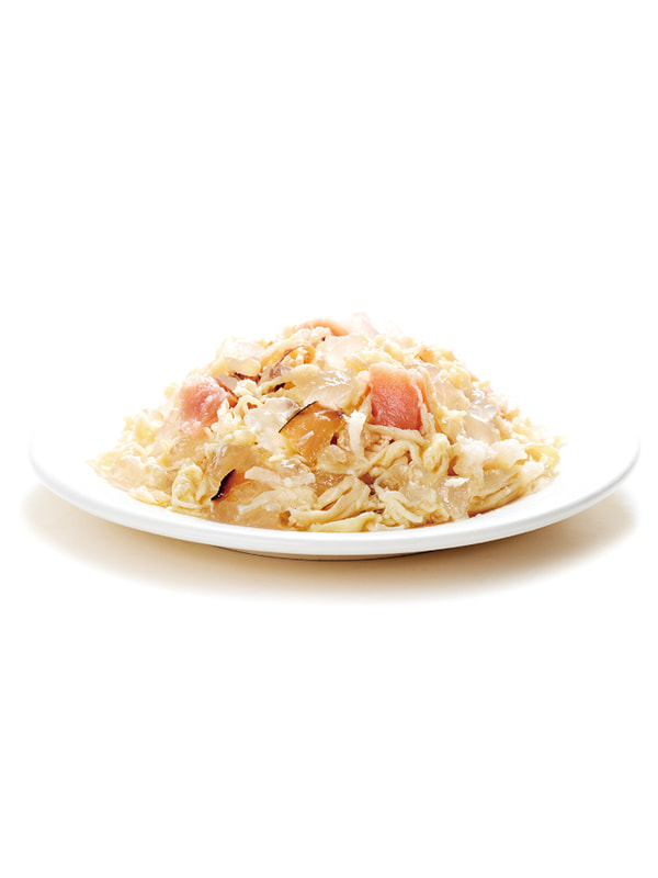 курица, лосось, крахмал, каррагинан, соль, скумбрия, таурин, полифенолы чая, витамины (A, B2, B3, B5, D3, E), карбонат кальция