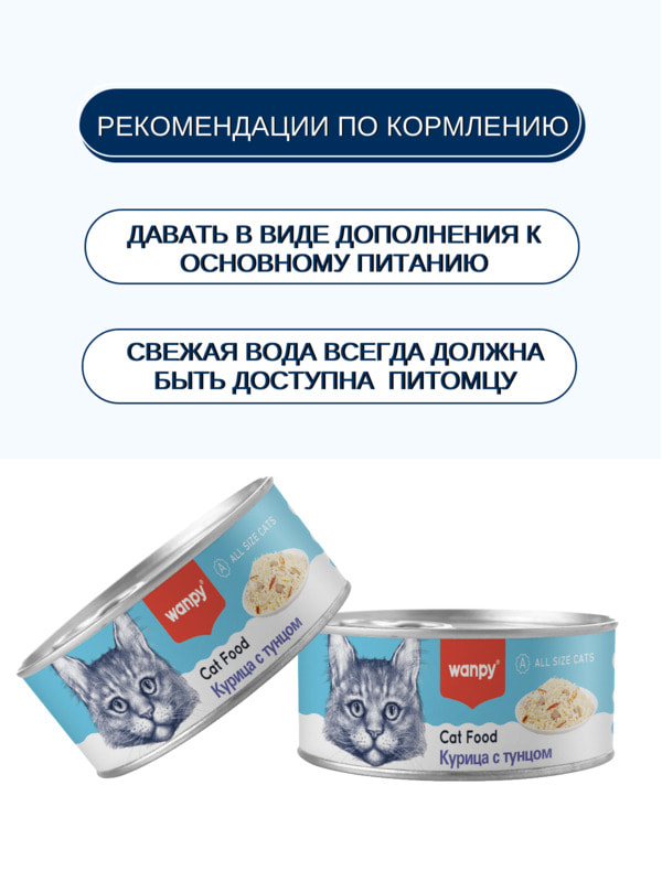 Wanpy Cat консервы для кошек "Курица с тунцом" - это высококачественный сбалансированный корм, который обеспечит вашего питомца необходимыми витаминами и минералами.