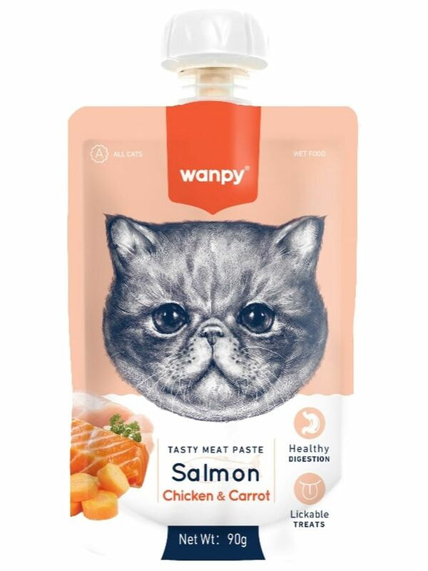 Повседневные Wanpy Wanpy Cat Лакомство для кошек Мясной мусс из лосося и курицы с морковью 90 г