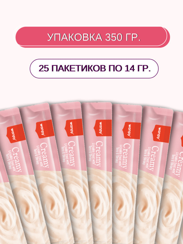 Повседневные Wanpy Wanpy Cat Лакомство для кошек "нежное пюре" из тунца и креветками 25 шт х14 г