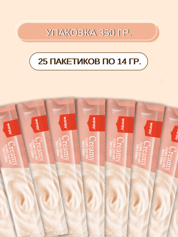 Повседневные Wanpy Wanpy Cat Лакомство для кошек "нежное пюре" из тунца и лосося 25 шт х14 г