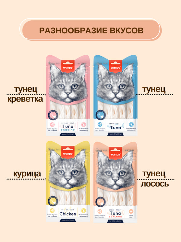 Wanpy Cat Лакомство для кошек "нежное пюре" из тунца и лосося - это уникальное лакомство, которое не только порадует вашего питомца своим изысканным вкусом, но и обеспечит его необходимыми витаминами и минералами.