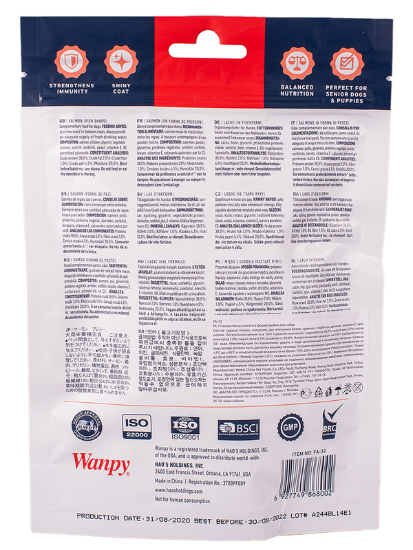 Wanpy Dog лакомство кусочки из нежного лосося в форме рыбок 100 г.