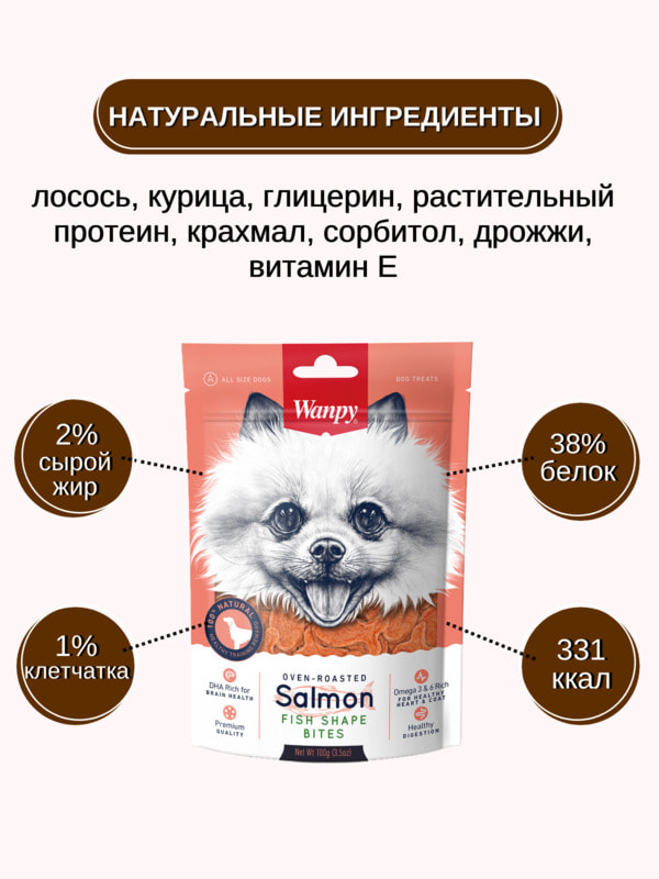 Повседневные Wanpy Wanpy Dog лакомые кусочки из нежного лосося в форме рыбок 100 г