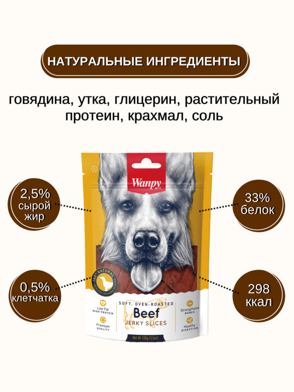 Повседневные Wanpy Wanpy Dog соломка из вяленой говядины 100 г