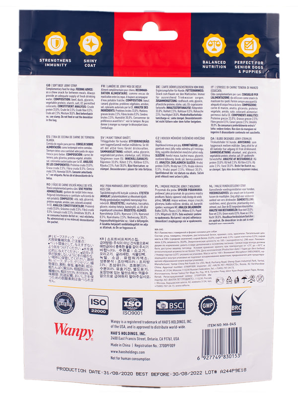 Wanpy Dog лакомство соломка из вяленой говядины 100 г.