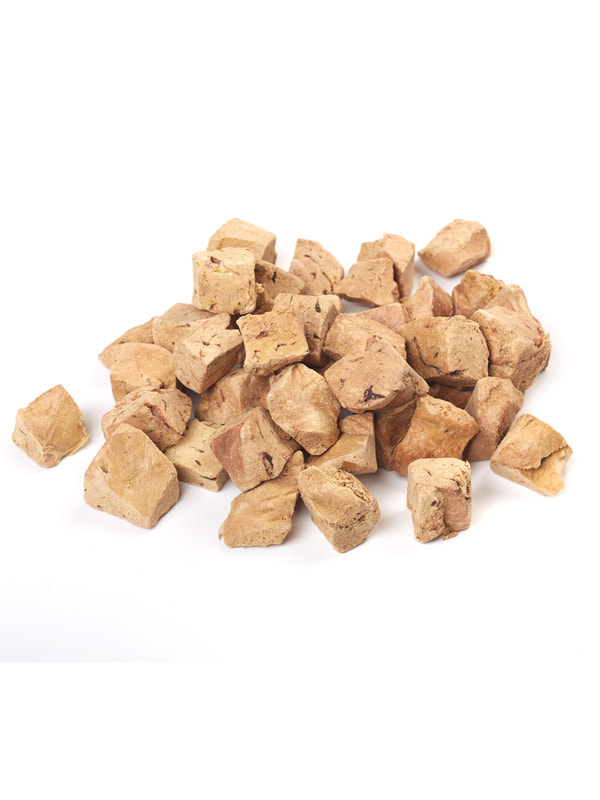 Лакомство состоит из одного натурального ингредиента - куриной печени. Благодаря применению специального процесса сублимации, все полезные вещества и витамины сохраняются в продукте, делая его еще более вкусным и ароматным.